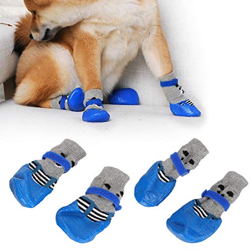 Cikonielf 4 Pezzi Calzini per Cani in Maglia Antiscivolo Calzini per Gatti Protezioni per Zampe per Cani Scarpe per Cani con Rinforzo in Gomma per Abbigliamento Outdoor Indoor(L)