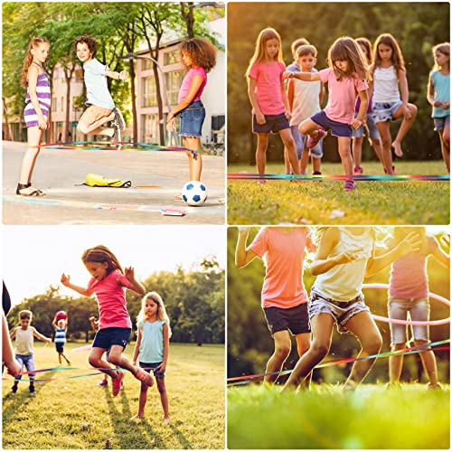 Cikyner Corda per Saltare Cinese, 4 m di Lunghezza 1,5 cm Gomma Elastica per Bambini con Istruzioni per Salto Francese Arcobaleno per Bambini Indoor e Outdoor Giochi, Ideale per Regali per Bambine