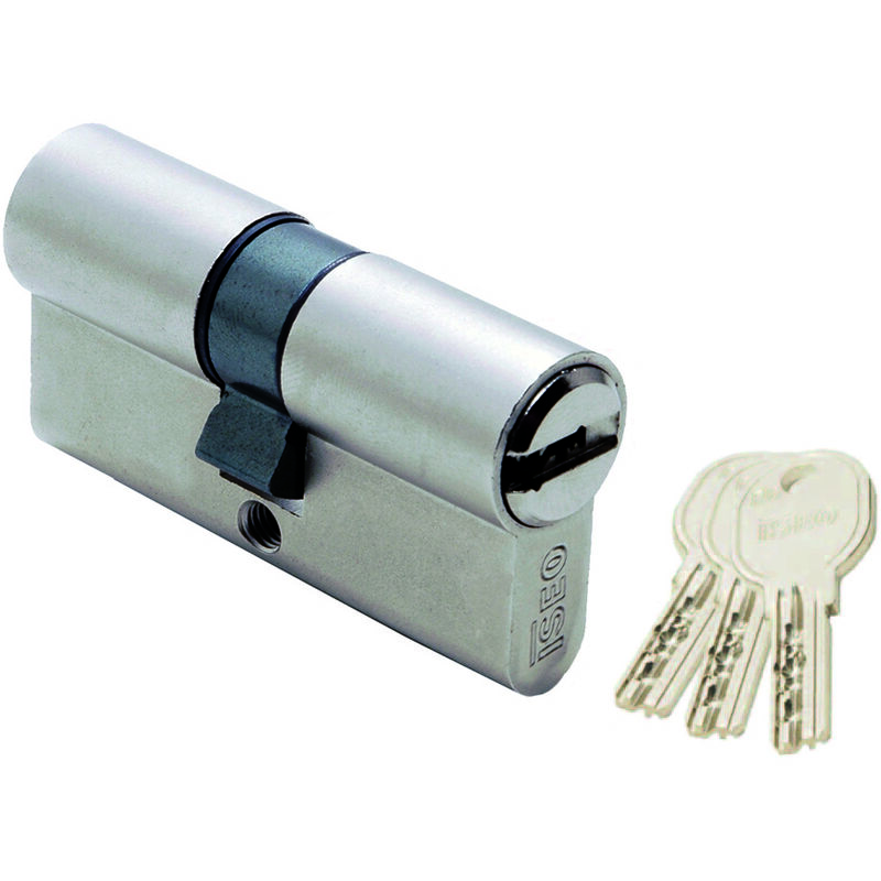 Corpo e 3 chiavi in ottone nichelato a 6 spine - spina antitrapano nel corpo cilindro - CAMMA DIN 30° sporgente e vite mm.65