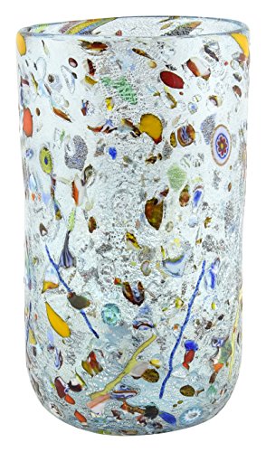 VASO CILINDRICO ARLECCHINO Vetro Murano Foglia Oro Murrine Vaso Venezia Fatto a Mano