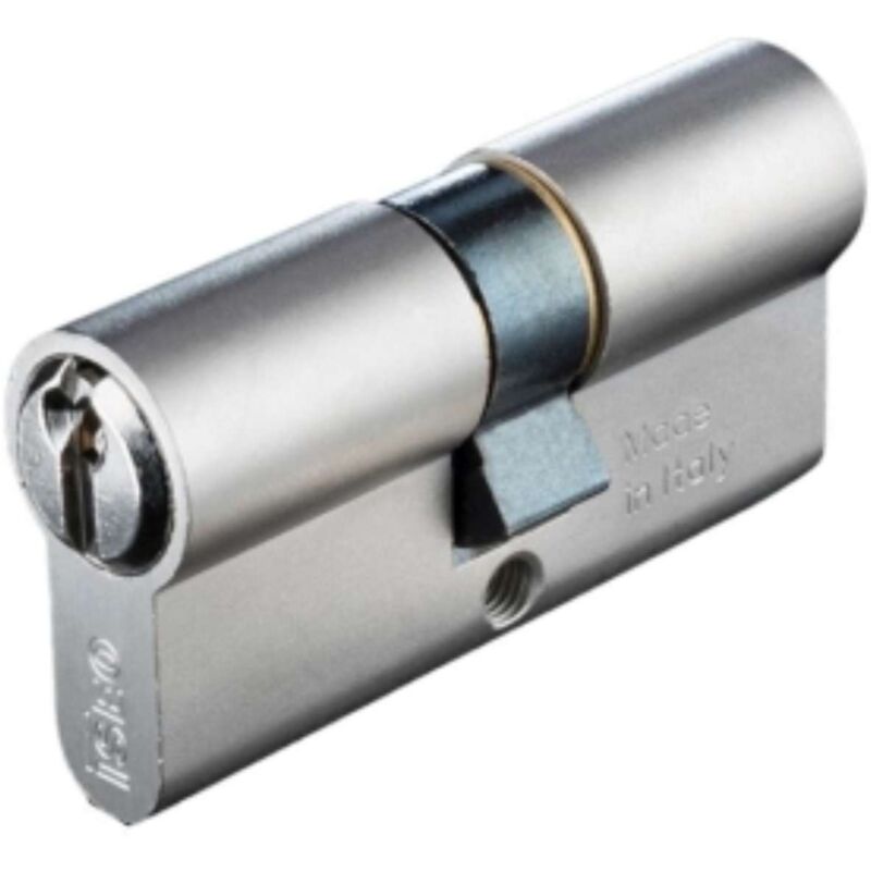 Cilindro A DOPPIO PROFILO EUROPEO NICHELATO Chiave 6 spine. Preassemblato con molle, controperni, tappi, snodino, camma DIN 30°, anelli in acciaio e tappi in nylon. Spina antitrapano nel corpo cilindro. Vite di fissaggio. Cilindretto da ordinare a parte. Cod. L (C+D) C D 880935559 90 35 55 880945559 100 45 55 880945609 105 45 60 880940709 110 45 55