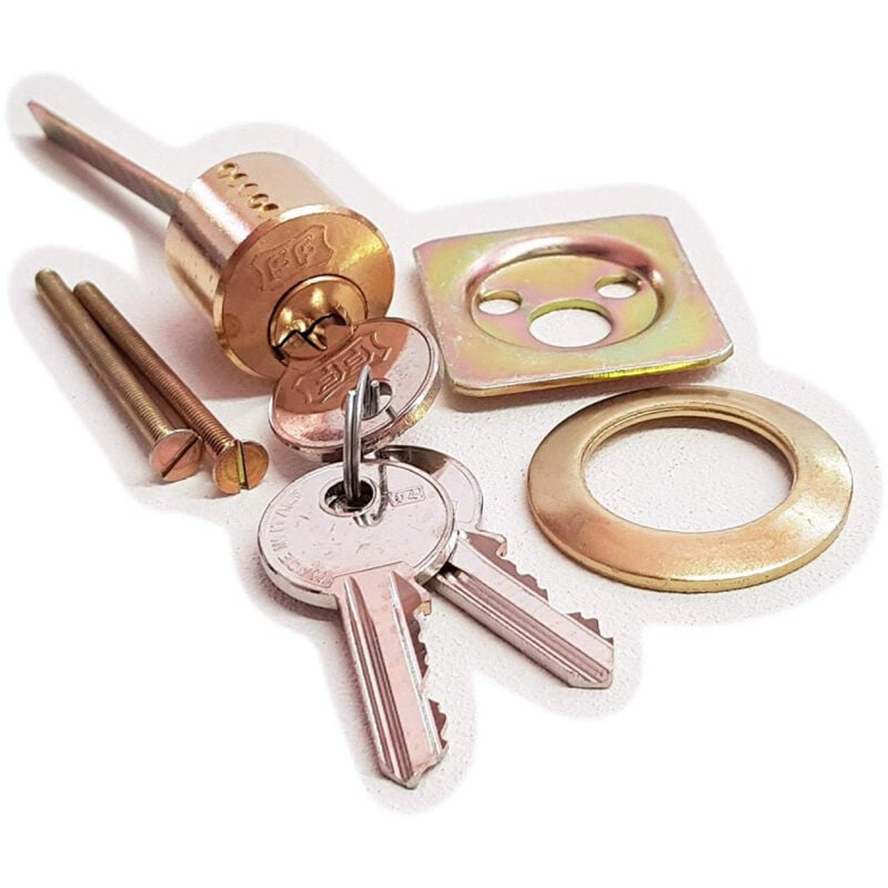 Cilindro esterno staccato - per serrature porte di legno Cilindro esterno staccato regolabile Completo di ghiera in acciaio ottonato e piastrina di fissaggio Sporgenza regolabile da 35 a 90 mm