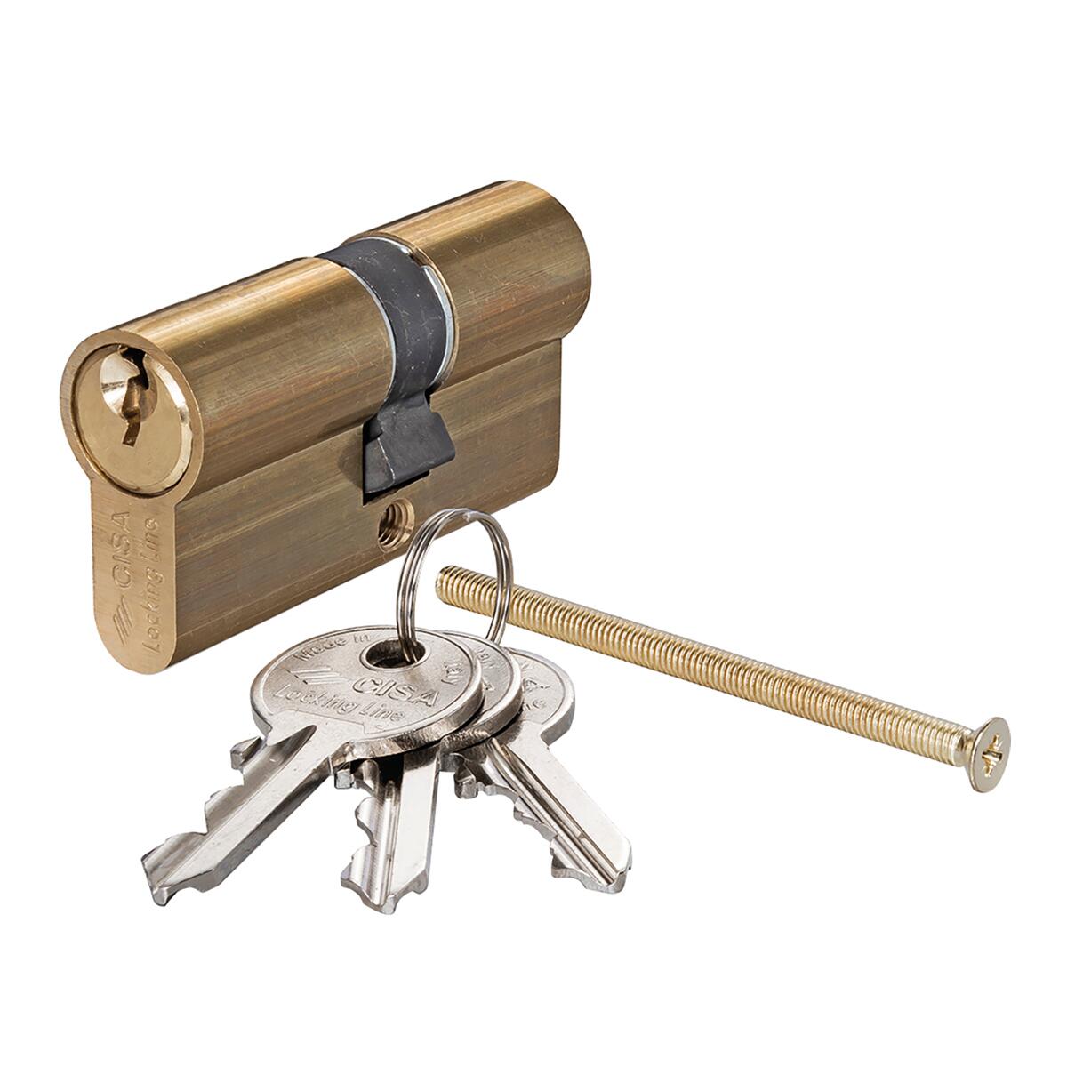 Cilindro europeo in ottone, camma verticale con 3 chiavi dentate. Porta secondaria. Antforatura