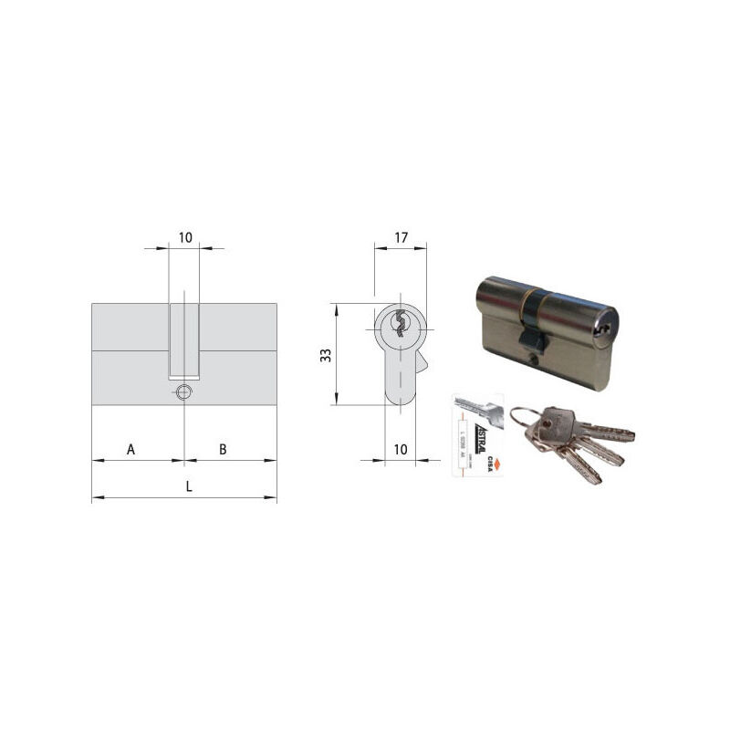 Cilindro ottone nichelato Sistema a 10 perni Protezione antitrapano 3 chiavi Astral punzonate code card Cod.82047/86487