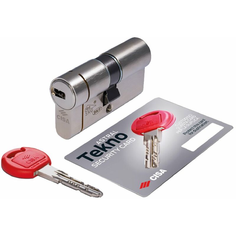 Mm 35+10+75 = 120 (40+80)Profilo europeo, chiave piatta reversibile. Corpo in ottone a finitura nichelata. Funzionamento chiave interno ed esterno, 10 perni. Cilindretti ottone, camma frizionata in acciaio, perni in acciaio cementato, molle in bronzo fosforoso e acciaio. Dotazione: 3 chiavi, security card, vite fissaggio. Conforme alle normative EN 1303:15. Resistenza attacco grado C.
