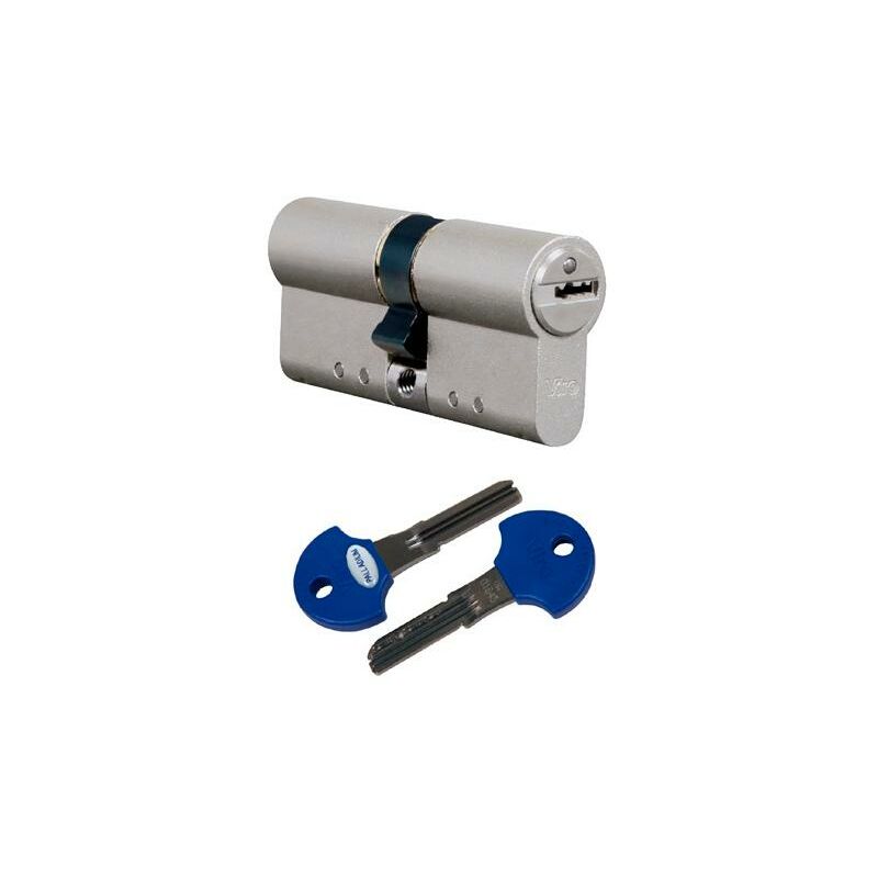 Viro PALLADIUM - Doppi cilindri profilati - Cilindri di massima sicurezza - A profilo europeo - Con chiave punzonata Esclusivi cilindri "Made in Italy", protetti da spine antitrapano sul corpo e sul barilotto, dotati di barra di acciaio inox antistrappo che unisce saldamente i due lati del cilindro. Innovativa chiave punzonata (che permette un elevato numero di cifrature), anche in versione protetta da marchio di forma PV con cifrature laterali e in versione brevettata con cifrature laterali e ingegno mobile. La tecnologia costruttiva adottata offre una gamma assai vasta di misure disponibili e possibili varianti. CARATTERISTICHE Corpo: in ottone massiccio trafilato, modulare, finitura nickel satinato. Barra di rinforzo antistrappo: in acciaio inox AISI 304 Ø 6 mm inserita all'interno dei moduli che compongono il corpo, e visibile in corrispondenza del foro per la vite di fissaggio del cilindro. Spine antistrappo: 2 verticali (nel corpo) e 1 longitudinale (nel barilotto), in acciaio