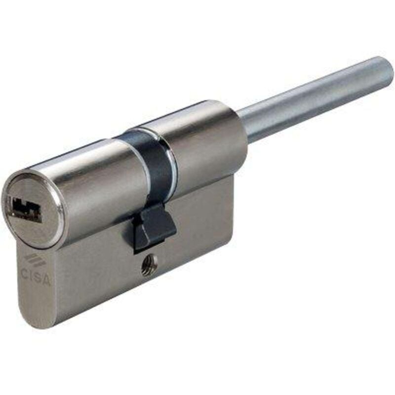 Cilindro ottone nichelato Utilizzo 1 chiave e 1 pomolo Sistema a 6 perni attivi + 2 passivi Perni econtroperni acciaio carbonitrurato Camma acciaio sinterizzato Molle bronzo fosforoso e acciaio Protezione antitrapano BKP resistente Bumping brevettodepositato 5 chiavi Asix 00670-10-0 cod.85663 + 1cantiere Duplicazione chiavi con Personal Card