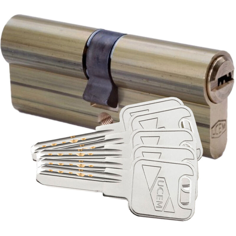 Cilindro di sicurezza in ottone a profilo europeo 33-38, camma lunga. 2000s2lp3338ll ucem Cilindro di sicurezza a 6 pistoncini. finitura ottone. 5 chiavi in ottone. doppia frizione. Caratteristiche Camma lunga R15: Sì Finitura: Ottone Pistoncini: 6 Chiavi di tipo sicurezza incluse: 5 Riferimento produttore: 2000S2LP3338LL Tipologia: Cilindro di sicurezza a profilo europeo Misura: 33 + 38 mm< /li> Doppia frizione: sì
