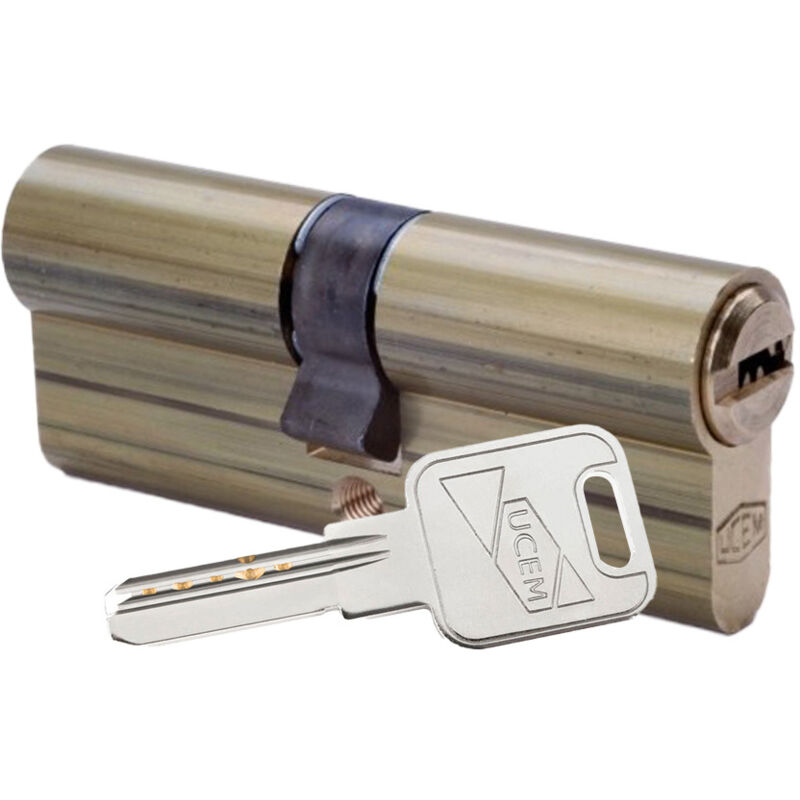 Cilindro di sicurezza a profilo europeo 33x33mm in ottone, camma lunga. 2000s2lp3333ll ucem cilindro di sicurezza 6 pin finitura ottone 5 chiavi in ottone. doppia frizione. Caratteristiche Camma lunga R15: Sì Finitura: Ottone Pistoncini: 6 Chiavi di tipo sicurezza incluse: 5 Riferimento produttore: 2000S2LP3333LL Tipologia: Cilindro di sicurezza a profilo europeo Misura: 33 + 33 mm< /li> Doppia frizione: sì