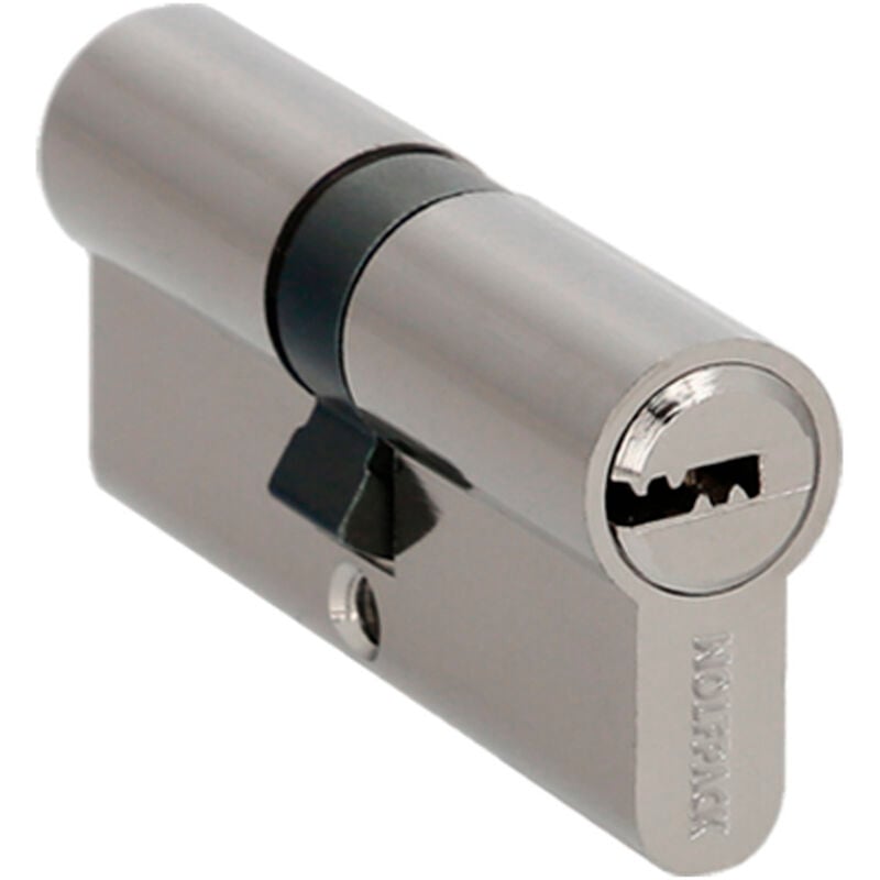 Cilindro di Sicurezza Wolfpack 30x30 Camma Lunga Nichelato Con 5 chiavi - Cilindro con sistema di sicurezza a 6 pistoncini. - Misura: 70 mm. (35x35 mm.) - Camma lunga 15 mm. - Frizione semplice, quindi girando la chiave non si può aprire dall'altro lato. - Profilo europeo. - Finitura nichel. - Articolo noto anche come lampadina, bombetta, profilo europeo/pera.