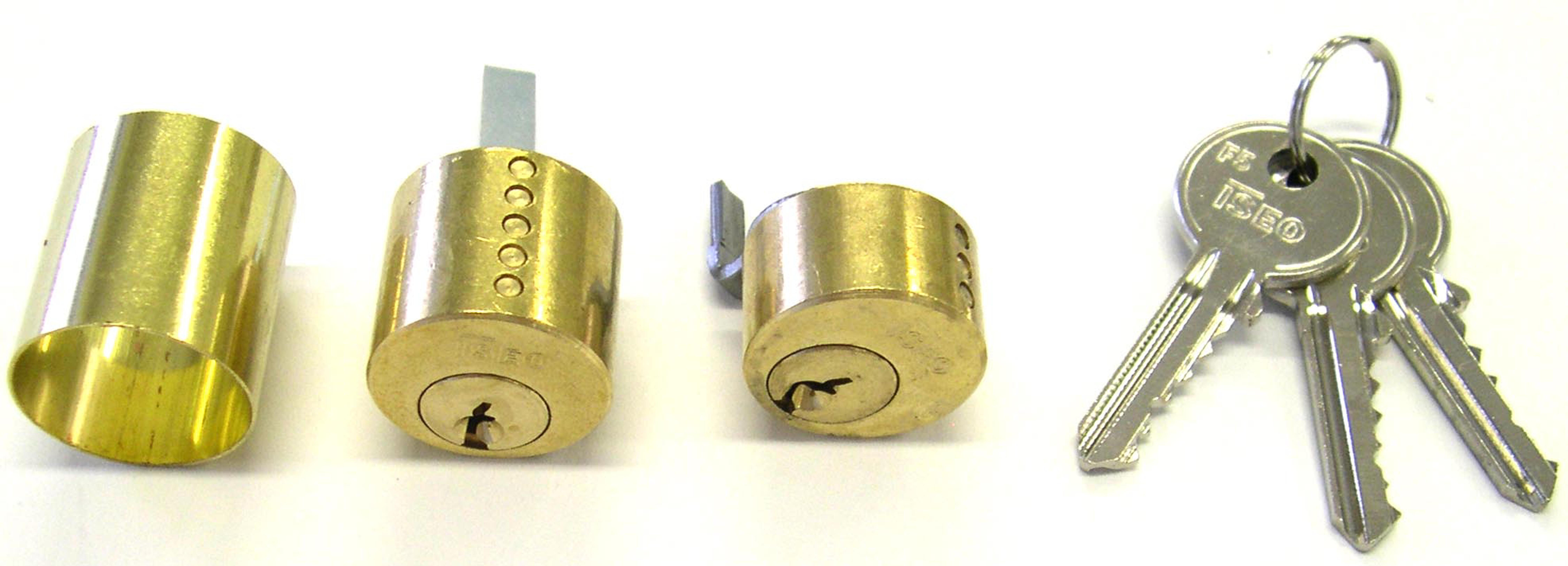 Cilindro tondo in ottone lucido, camma verticale con 3 chiavi dentate