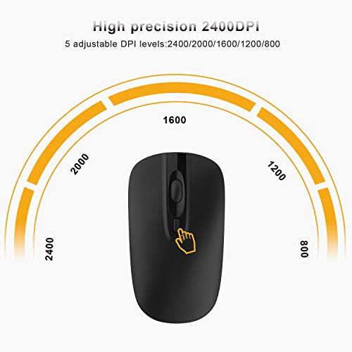 Cimetech Mouse Wireless Ricaricabile, 2,4G Ultra Sottile Mouse Silenzioso Senza Fili Ottico Mouse da Viaggio Portatile per Notebook, PC, Laptop, Computer, Macbook (Ricaricabile, Nero)
