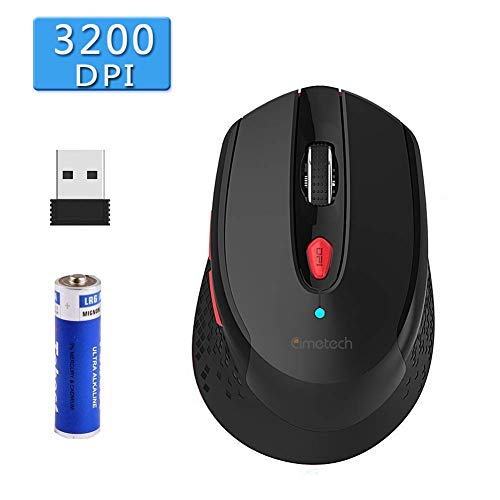 Cimetech Mouse Wireless Mouse Senza Fili 2.4Ghz 1600 DPI con 3 Livelli Regolabili, 6 Pulsanti per Windows/Mac/Linux (Nero-rosso)