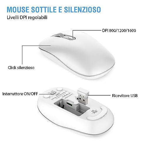 【TECNOLOGIA SILENT TOUCH】Sia la tastiera che il mouse emettono un rumore molto basso, quasi nullo, quando i loro rispettivi tasti vengono premuti, così da poter lavorare in un ambiente tranquillo e da essere adatti per l'uso a casa, in biblioteca, in sala conferenze, in caffetteria ed in altri posti simili