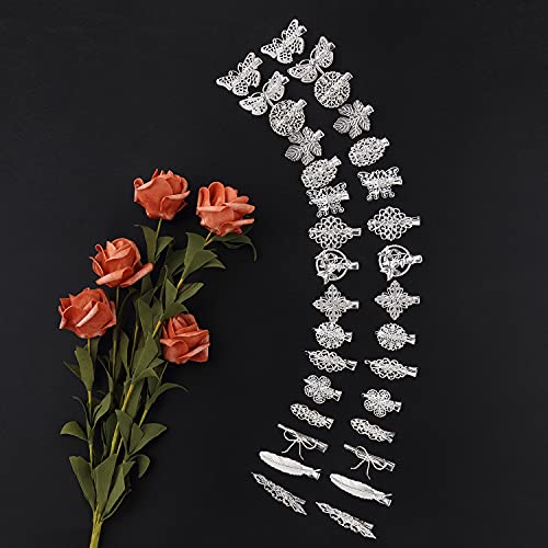 Cinaci Confezione da 32/16 paia di fermagli per capelli piccoli in metallo argento retrò vintage foglia fiore farfalla coccodrillo mini mollettine decorative piccole forcine per capelli per donne