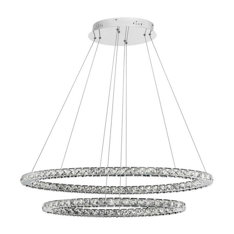 Merano Cincinnati Plafoniera LED Integrata a Sospensione Cromo Alluminio, Cristallo LED Orientabile 52W 3120Lm 3000K | Finitura: cristallo trasparente | Materiale: alluminio, cristallo | Classificazione IP: IP20 | Altezza: 120 cm | Lunghezza: 85 cm | Larghezza: 42 cm | Tipo di lampada: LED integrato | Lampadina inclusa: Sì | Dimmerabile: No | Kelvin: 3500 K | Lumen: 3120lm | Peso: 7 kg | Potenza (massima): 52W