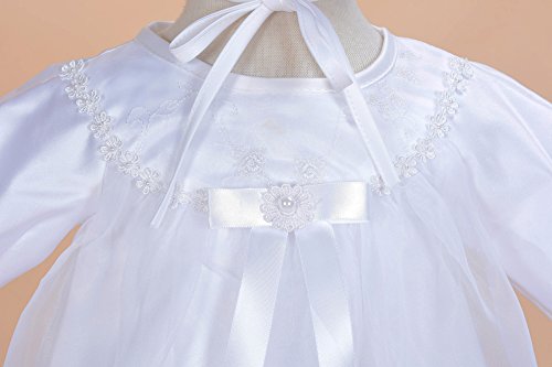Cinda Bambino Maniche Lunghe in Raso Battesimo Abito Lungo e Cofano Motore Bianco 9-12 Mesi