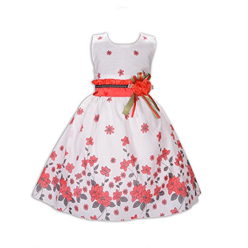 Cinda Floral Cotone Vestito Rosso e Bianco 6-7 Anni
