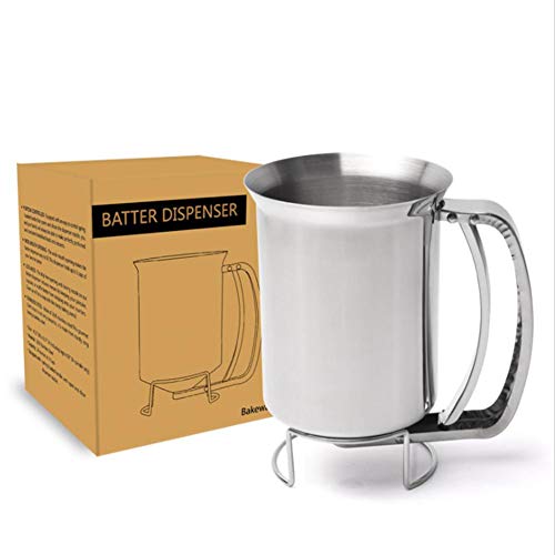 Cineman Handsome - Dosatore per impasti per torte, waffle a mano, con coperchio, in acciaio inox, professionale, imbuto