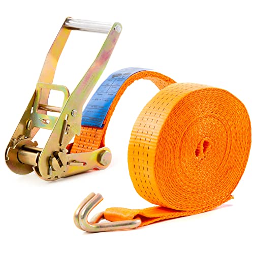 Cinghia di ancoraggio con gancio da 10 m a 4000 kg, fino a 4,0 t / 4000 daN, due pezzi Cinghia a cricchetto in due pezzi arancione, 50 mm Larghezza della cintura