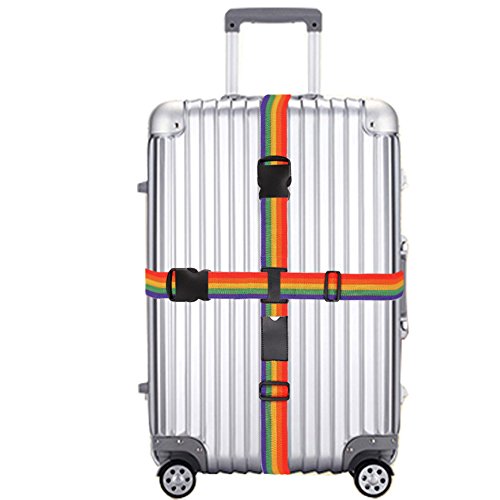 Cinghia per bagagli, stile arcobaleno colori croce Confezione Cintura regolabile Heavy Duty Lang valigetta custodia di sicurezza con bretelle nero Typ A