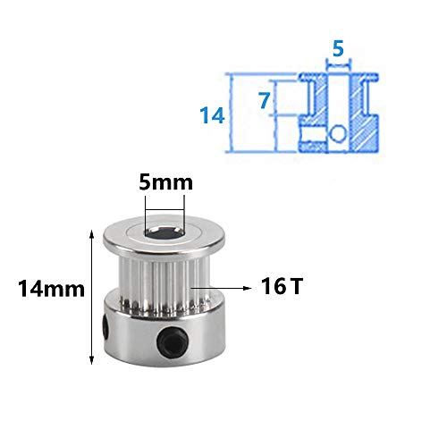 5M GT2 Cinghia Dentata 6mm Ampia, 5Pcs 5mm 20/16 Denti Alluminio Puleggia, Chiave Esagonale a L, per Stampante 3D con 2 Viti in Ogni Puleggia, Accessori Stampante 3D (16T)