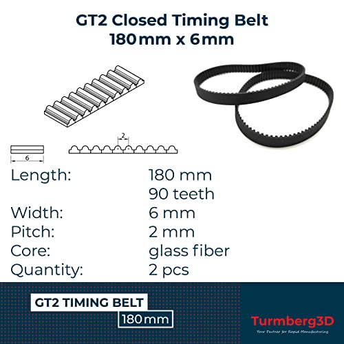 GT2, Cinghia dentata chiusa sincrona, Larghezza 6mm, 2 pezzi (180mm)