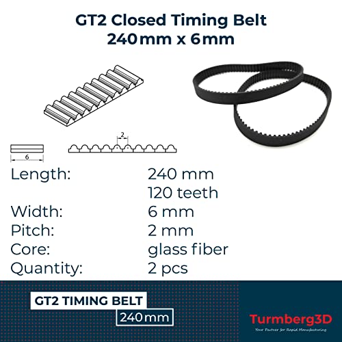 GT2, Cinghia dentata chiusa sincrona, Larghezza 6mm, 2 pezzi (240mm)