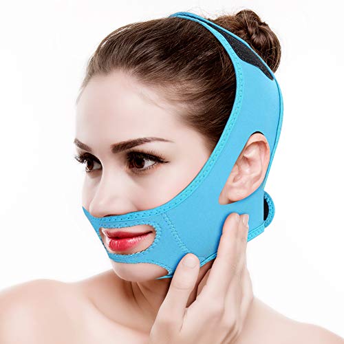 La cinghia facciale di sollevamento della maschera di sollevamento facciale stringe la fasciatura della pelle, doppio mento rimuove la fasciatura di perdita di peso regolabile (blu)