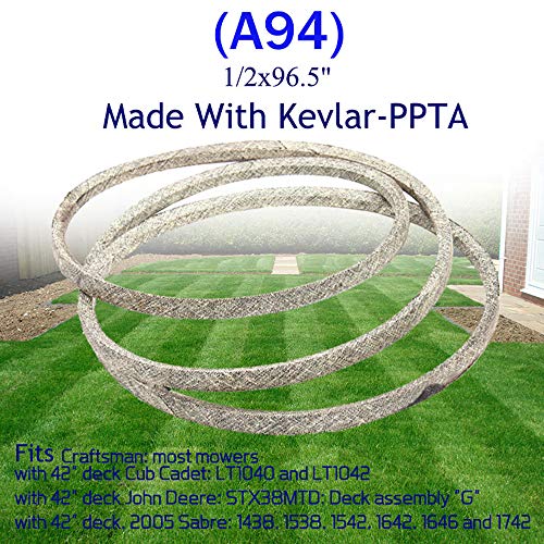 Cinghia per falciatrice realizzata in Kevlar 1/2 "x 96" per artigiano SPM201671081, Cub Cadet754-04060, Compatible for John Deere GX10851, MTD754-04060, Sabre GX10851 Toro 102741 Murray 037X87MA