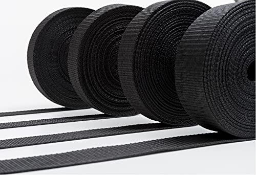 IPEA Cinghia Rigida in Nylon per Zaino e Borse - 10 Metri di Lunghezza - Corda Cinturino Multiuso per Cucito, Sport, Bagagli, Fai da Te - Misure 20/25 / 30/40 mm - Nero - 2 CM