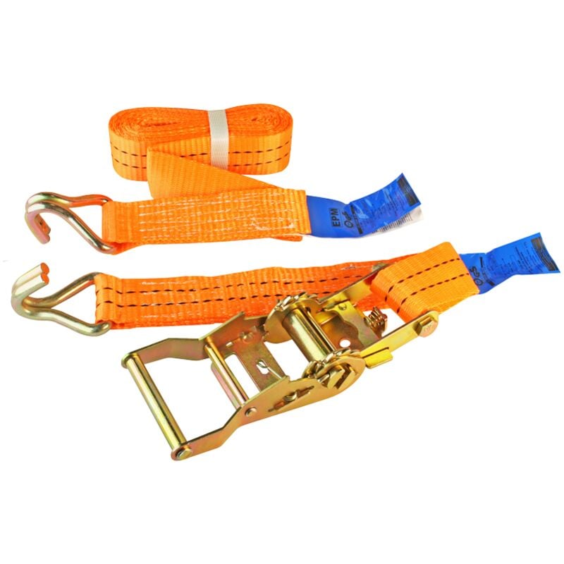 Le cinghie sono realizzate in poliestere (PES) e sono quindi resistenti ad acidi, oli e grassi. - Temperatura di esercizio consentita: da -40 a +100 gradi C - Elasticità massima: 7% - Ganci e tenditori sono in acciaio zincato - Prodotto conforme ai requisiti della norma EN 12195-2 Applicazione: per il fissaggio dei carichi durante il trasporto. LUNGHEZZA NASTRO CON TENDITORE 0,3 M RESISTENZA 5 T LC - NASTRO 2500 daN LC - TENSIONE 5000 daN LARGHEZZA NASTRO 50 MM