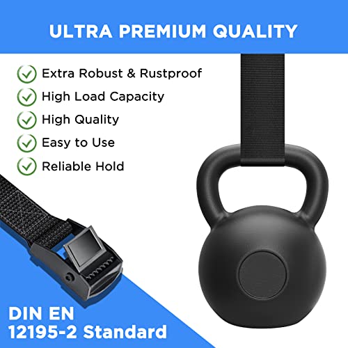 【Multiuso】 Cinghia extra forte, cinghia anticorrosione, capacità di carico fino a 500 kg, le cinghie di fissaggio sono ideali per uso domestico ed esterno, ampiamente utilizzate per fissare merci, bagagli, imballaggi, attrezzatura da campeggio o articoli per la casa, ecc. Un must-have cinghie di fissaggio per ogni famiglia.