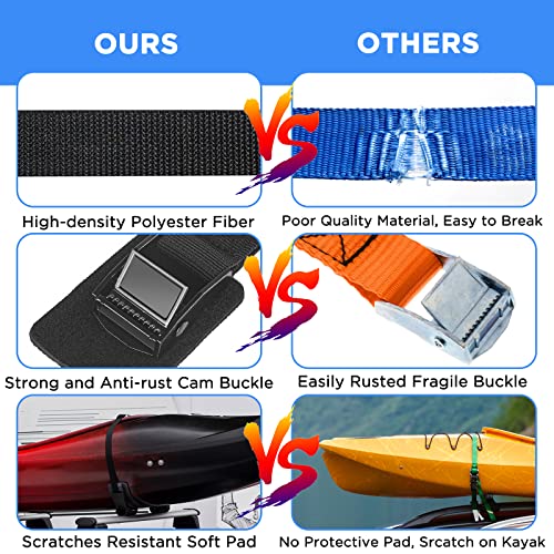 【Pad antigraffio】 Le cinghie di fissaggio sono dotate di un cuscinetto in schiuma di buone dimensioni e spessore sotto la chiusura in metallo, un design speciale per proteggere il veicolo e il carico dai graffi.