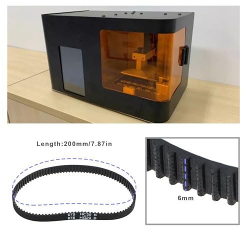 Dimensioni: la cinghia dentata GT2 è larga 6 mm, lunga 200 mm e ha una suddivisione dei denti di 2 mm.
