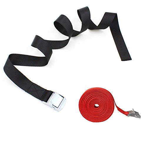 Cinghie di fissaggio cinghie SUNSHINETEK Cinghie a cricchetto regolabili Cinghie di trazione heavy duty con sgancio rapido per cinghia da viaggio (rosso e nero, 2 pezzi, 3M * 25 mm)