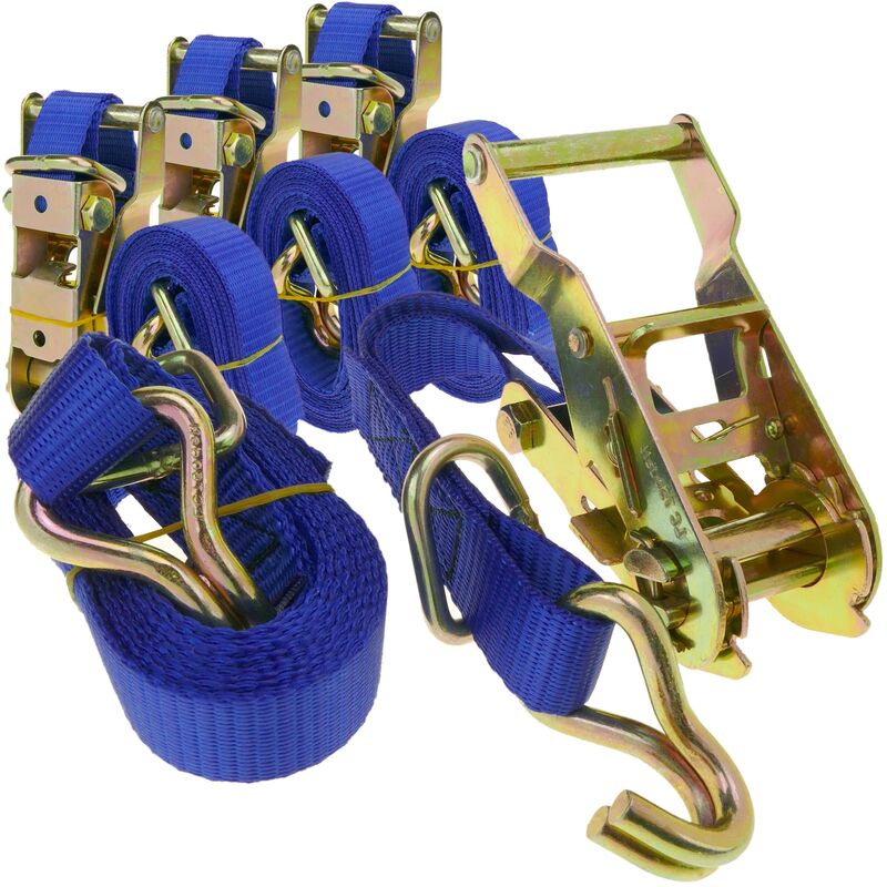Confezione da 4 cinghie di fissaggio composte da un cricchetto metallico e una cinghia che termina in due ganci metallici che hanno un'elevata capacità di tenuta per legare e trattenere qualsiasi tipo di colli, carichi e altri elementi durante il trasporto. Caratteristiche del prodotto: SPECIFICHE: Set di quattro robuste cinghie di fissaggio blu in due pezzi con cricchetto in metallo per una facile regolazione della tensione su un'estremità e 2 ganci a J sull'altra, che consentono di fissare e legare fasci e pacchi di diverse dimensioni durante il trasporto. DESIGN: Si tratta di attraenti cinturini di colore blu realizzati in poliestere altamente tenace e resistente e che hanno un cricchetto di fissaggio con finitura in metallo a un'estremità e due ganci di tipo J all'altra. IDEALE: è il prodotto perfetto per immobilizzare vari oggetti durante il trasporto su camion, furgone, rimorchio, portapacchi per auto, roulotte, ecc. In questo modo, il suo fissaggio di sicurezza permette il