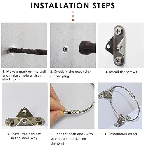 Cinghie Di Sicurezza Per Mobili Da 12 Pezzi, Set Di Cinghie Per Mobili Antiribaltamento Con Chiodi E Viti Ad Espansione In Fune Metallica, Kit Di Ancoraggi A Parete Per La Protezione Del Bambino