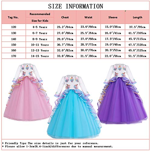 CinheyU Ragazze Carnevale Costumi Unicorno Principessa Compleanno Matrimoni Tulle Lungo Maxi Abiti Natale Halloween Cosplay Cerimonia Festa Vestito Maniche Lunghe Arcobaleno 14-15