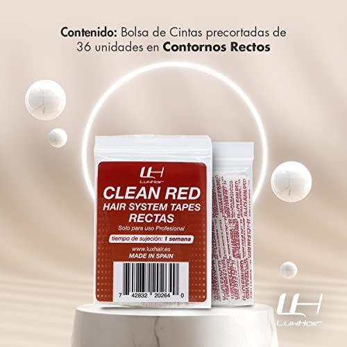 Cinta Adesiva per Parrucche e Protesi Capillari Clean Red - 36 pezzi - Doppia Faccia Flessibile - Adesione Non Aggressiva - Tenuta Resistente ed Extra Forte fino a 7 Giorni - Contorni Retti - LuxHair
