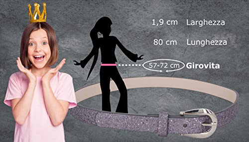 Cintura per bambini 'Tesoro degli elfi (argento)' per bambine (5-10 anni, circonferenza fianchi 57-72 cm, misura cintura 65 cm)