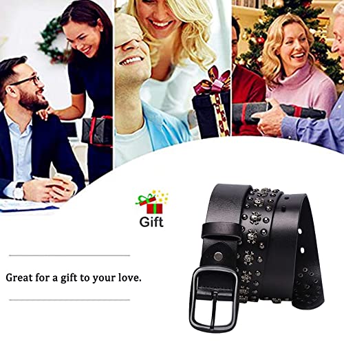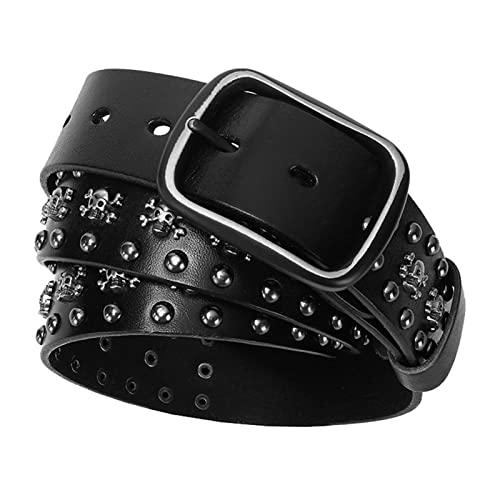 Cintura con borchie alla moda in metallo Punk Rock Biker Rivetto Cintura in vera pelle con borchie Cintura gotica per donna Uomo Jeans Gonna 38mm Larghezza,Nero,125cm/waist:42"~44"