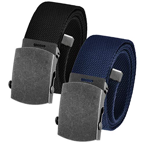 Cintura da golf da uomo in tela casual con fibbia a scorrimento argento invecchiato Confezione da 2 pezzi nero e blu navy. XXX-Large