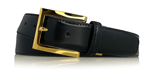 Cintura uomo classico - Fibbia oro - Vera Pelle - Cinta uomo per abito - 3,5 cm di larghezza - 35 mm - Fibbia dorata - Leather belt for men - Nero, 115