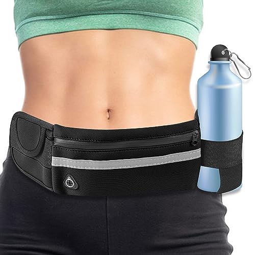 Cintura da corsa, impermeabile, marsupio da corsa con borraccia da donna e uomo, marsupio regolabile per tutti i tipi di telefoni cellulari (nero), Nero, moda