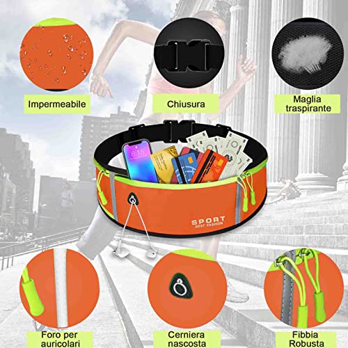 Cintura da corsa, marsupio impermeabile con striscia riflettente e foro per le cuffie, marsupio da corsa con cinghie regolabili, marsupio sportivo all'aperto per uomini e donne che corrono fitness