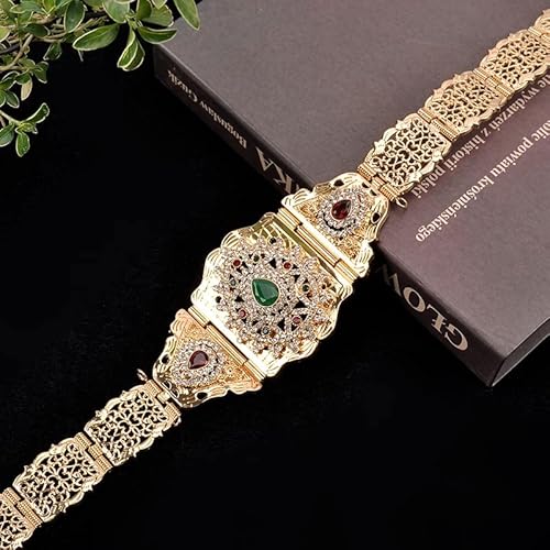 XKUN Cintura Donne Cintura in Oro Colore Rosso Verde Pietra Abito da Sposa in Metallo in Vita Cintura A Catena Gioielli-Gold 9,The Adjustable