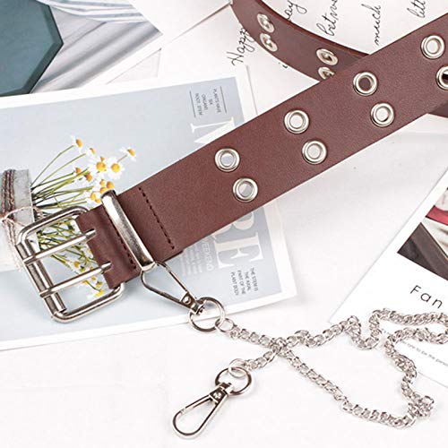 Cintura con Doppio Occhiello per Uomo E Donna, Fibbia per Cintura in Pelle PU Stile Punk Moda 70-100 Cm con Catena A Occhiello delle Donne Cintura con Doppio Occhiello