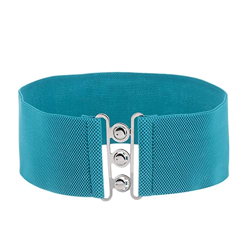 Cintura elastica da donna in vita larga con cinturino elasticizzato e fibbia in metallo, Azzurro, Etichettalia unica
