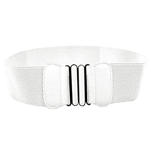 Cintura Alta Elasticizzata Elastica In Vita Con Cinturino In Pelle Con Fibbia In Vita Da Donna - Bianco, 62-90cm